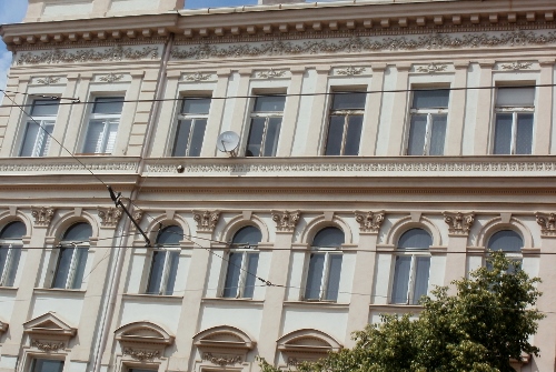 Tady tedy kdysi dávno bydlel a ne ne zapomenout. Jsou to Vršovice, naproti Husovu sboru a koukám, aby to nebyl poslední pohled na dům jeho mladosti a radosti. Jsou to okna až nahoře, kde je kulatá anténa.