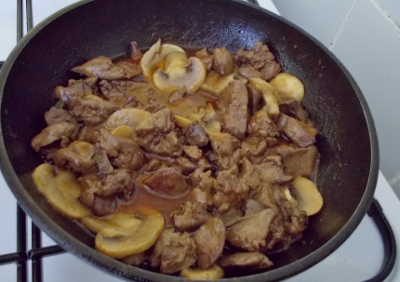 Jednalo se o KUŘECÍ JÁTRA SE ŽAMPIONY. Játra si občas rádi dáme, jsou hned a tak jsem nakoupila nejen játra, ale i žampiony a šla po příchodu do toho.