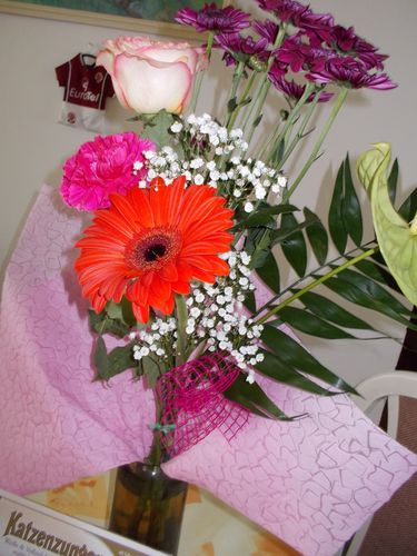 Naposledy jsem dala krátkou fotoreportáž z naší společné oslavy narozenin. Zapomněla jsem tam přidat fotky kytek, které jsem dostala. Tak to teď napravím.